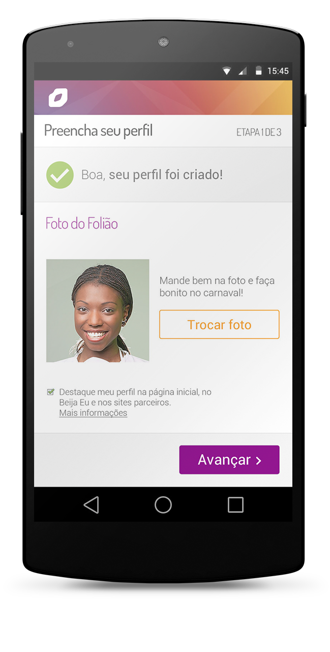 - Criar uma identidade visual vibrante que remetesse a idéia de paquera e azaração e à energia do carnaval e um símbolo que distinguisse o app na loja de aplicativos e no launcher do android.