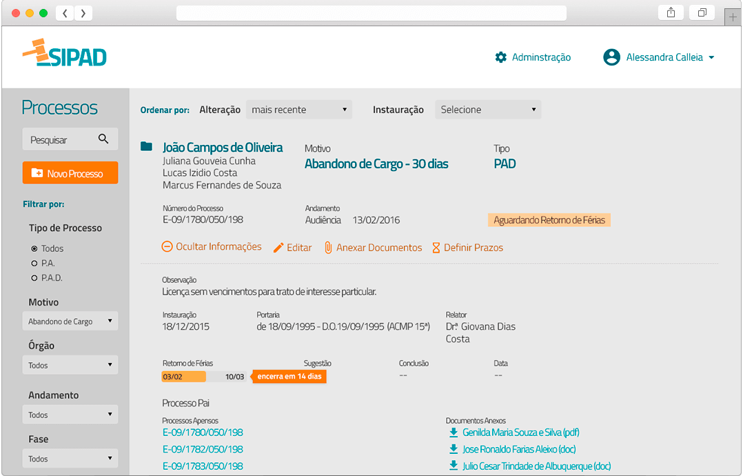 A área de Inquérito adminstrativo disciplinar, detentora do Sipad, percebeu que após uma reestruturação, a ferramenta tinha se tornado seu maior “gargalo”. Por isso, precisava com urgência de uma nova versão para sua ferramenta que havia sido desenvolvida já há alguns anos.